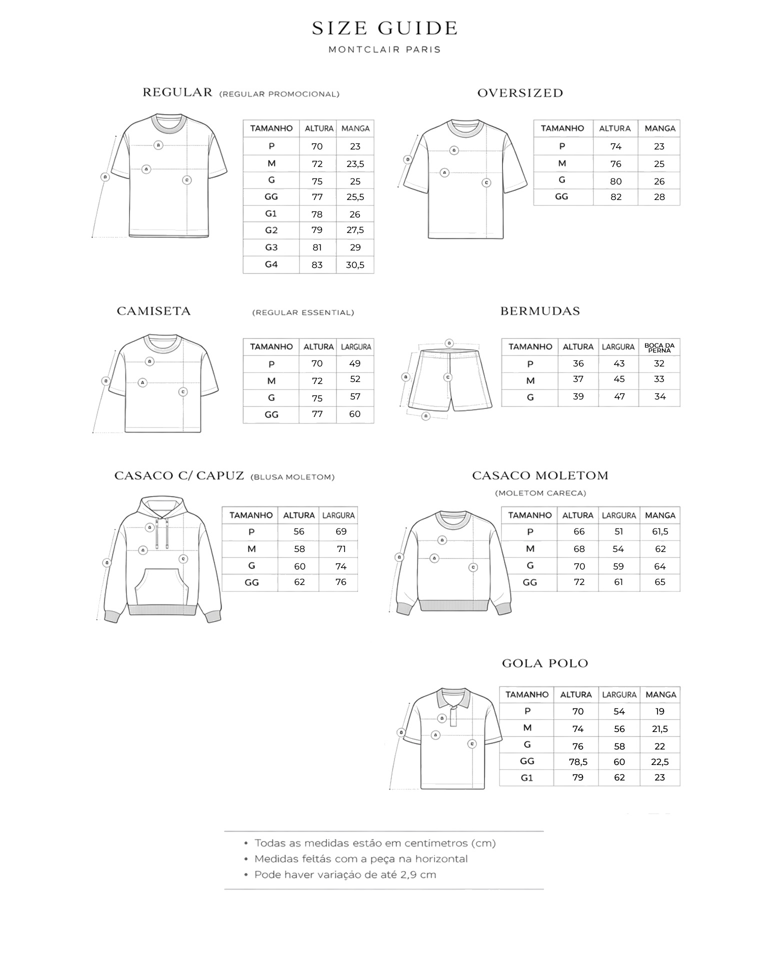 Todas as medidas estão em centímetros (cm) Amplie a imagem do produto desejado